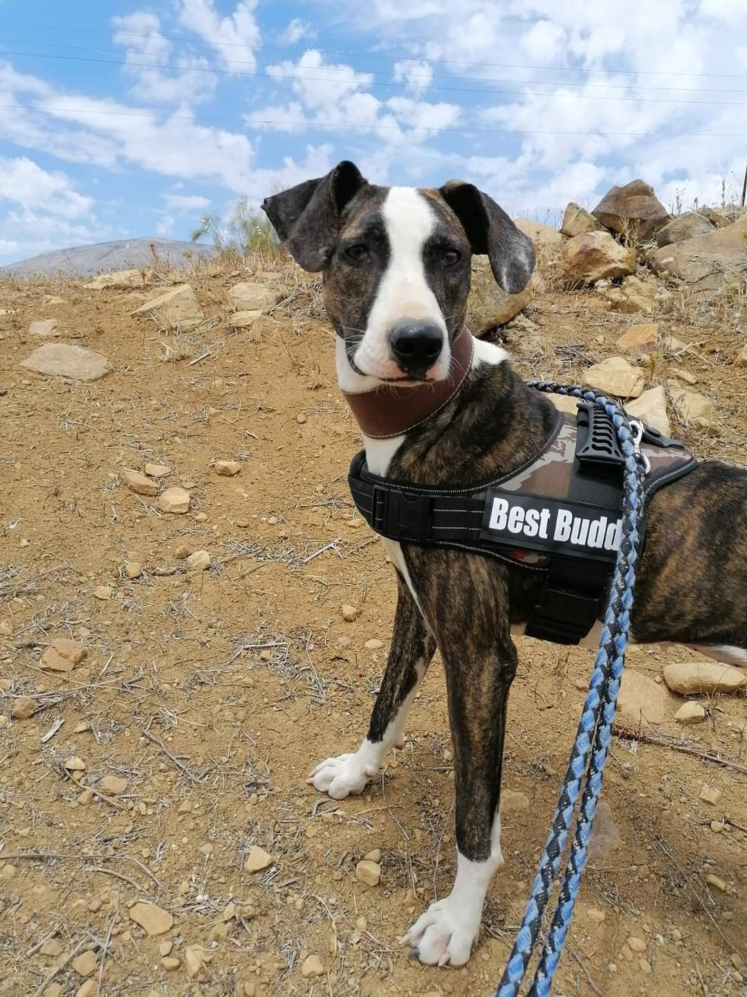 Belinda (wir nennen sie Pattex, weil sie immer so an uns klebt) die wurde hier in der Nähe im Flussbett gefunden. Sie hatte vorher ganz bestimmt eine Familie, die sie nicht mehr wollte :-(