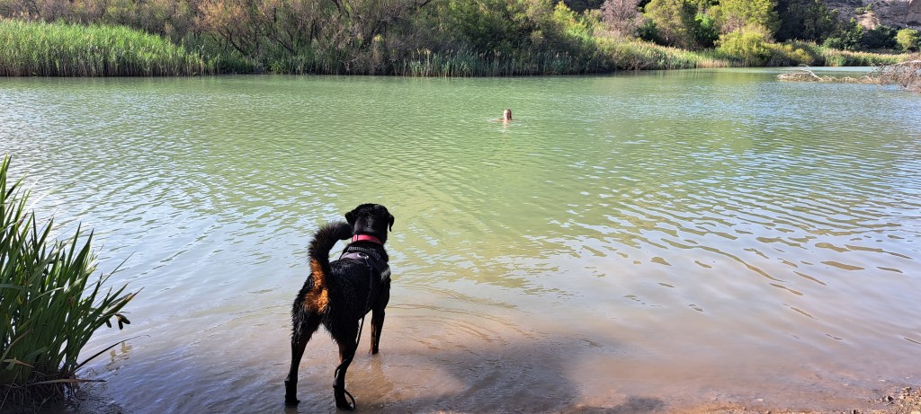 Badespass am Embalse de Gaitanejo. Jaron traute sich nicht zu schwimmen, auch wenn Olivia und Nele alles gegeben haben, ihn dazu zu motivieren. Er blieb lieber am sicheren Ufer ;)