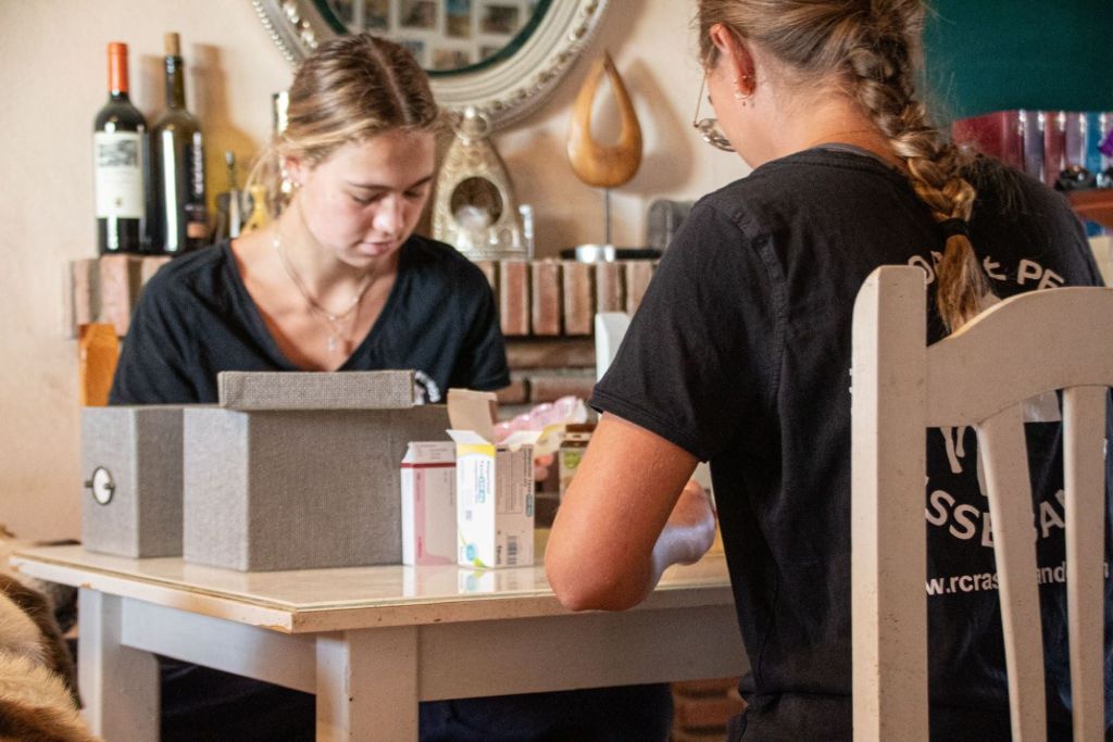 Da die meisten von uns ja nun mal das eine oder andere Wehwehchen haben und auf bunte kleine Leckerlis aus der Apotheke angewiesen sind, wurden die dann anschließend gleich noch von den Mädels portioniert und verteilt.